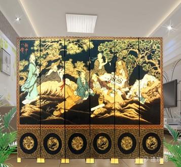 高档实木玄关漆画手绘屏风