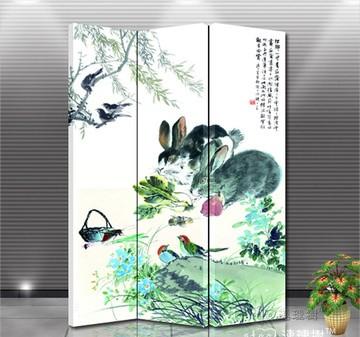 手绘屏风隔断办公实木家居