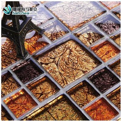 珊瑚海金色金箔 玻璃马赛克