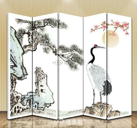 五扇双面实木屏风隔断 春到