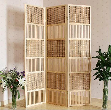 本色实木外框竹编屏风 玄关