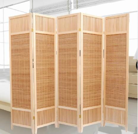 五扇实木竹编屏风 时尚家居