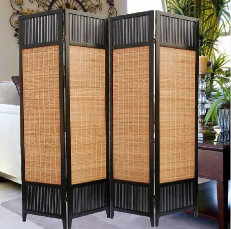 实木竹编四扇黑色屏风 酒店