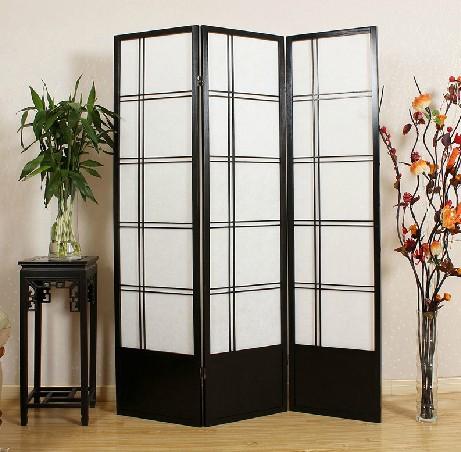 三扇无纺布实木屏风 时尚玄