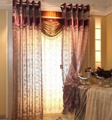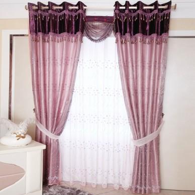 浮雕纱绣花现代紫色窗帘布艺