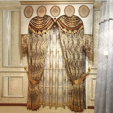 高档客厅卧室奢华金叶窗帘窗