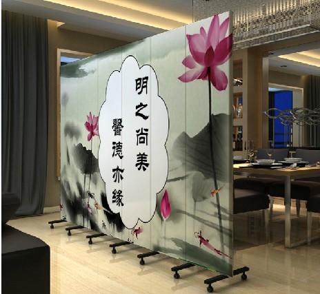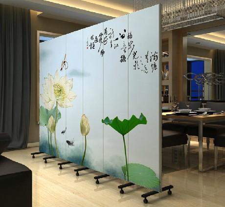 酒店布艺折屏 水墨荷花 山