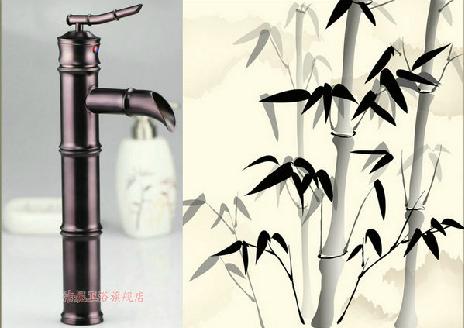 红古铜面盆龙头 加高竹节冷