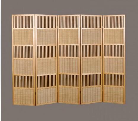 三扇本色实木外框竹编屏风