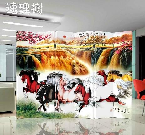 屏风实木框玄关门屏风 八骏